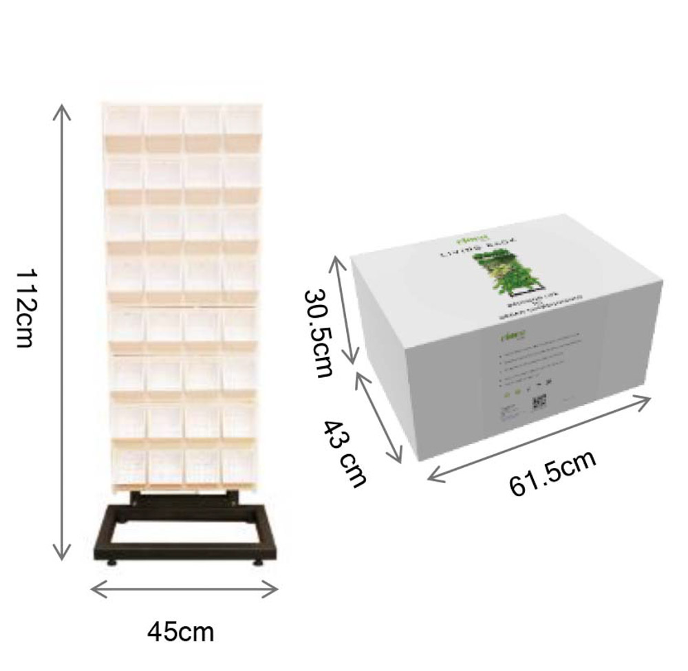 Our living rack is a 32 plants system that you can hang on your porch, or even on your rails at home.